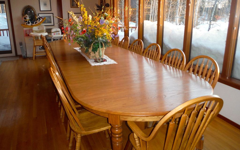 This property will comfortably sleep 26 people, making it the perfect place for a large family gathering. There are five bathrooms, two stoves and a breakfast bar that seats nine people at one time. The gigantic kitchen table has room enough for 18 people. Plus two high-chairs for the little ones.