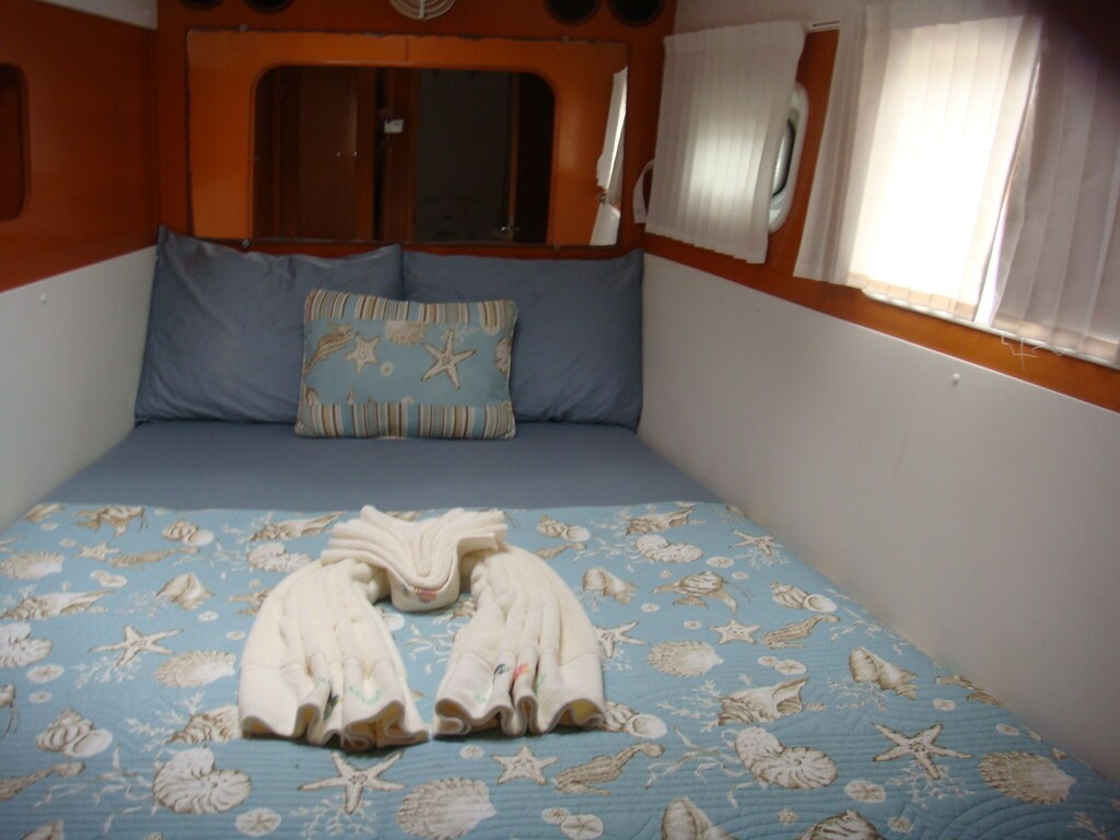 This was our first VRBO catamaran vacation. In the past we used brokers to locate catamarans that would meet our needs and preferences because we know we are a bit picky! 😊� We also complicated the booking process a few times due to the number of persons who committed to go and some had to drop out. Everything about Sea of Love was in good working order. The weather was a factor in enabling us to sail as often as we would have liked. A few of us had unusual diet requests which appeared to be effortlessly handled by our hostess, Carol. A home on a yacht is different when renting for a vacation because the owners are onboard with their personal belongings. Our rooms were adequate and typical of most catamarans. We were given unlimited access to the beverage cooler and snacks and Carol was always offering to prepare anything alcoholic. Captain Joe was very knowledgeable about the places to snorkel and where we would get the best experiences.