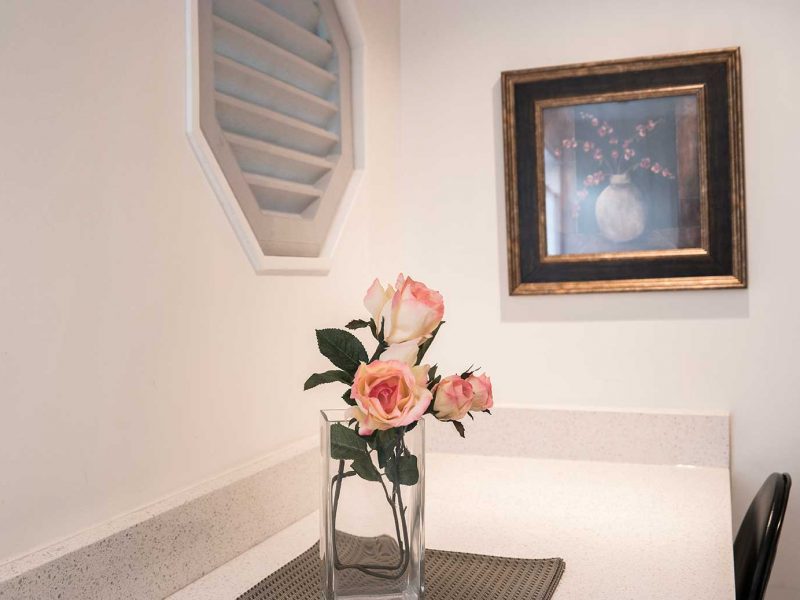 Enjoy the small patio with table and chairs right outside the kitchen suite door.
