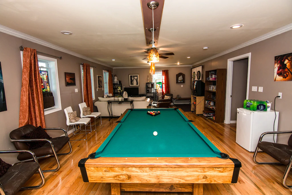 Our big family (8 adults, 4 teens, a toddler and an infant) had an awesome long weekend at Middelshire B&B. With the games room and the indoor pool, the kids were never bored, the kitchen and dining table were large enough for all of us at once, and there were more beds than people (even a toddler bed set up that my 2-yr-old loved)! Everyone was entertained by the fantasy decor and raved about the place. Can’t comment on the neighbourhood as we didn’t leave the house the whole weekend. Owners were away when we rented but left us in good hands and with thorough instructions and thoughtful provisions. I’m sure we’ll rent again!! Thank you, John and Adina!