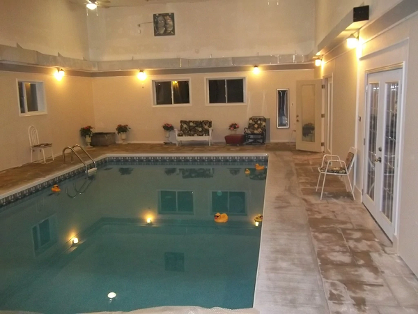 Our indoor swimming pool is available year round (a pool heating charge applies during winter months). The 5 person hot-tub and 2 person infrared sauna are also available year round.