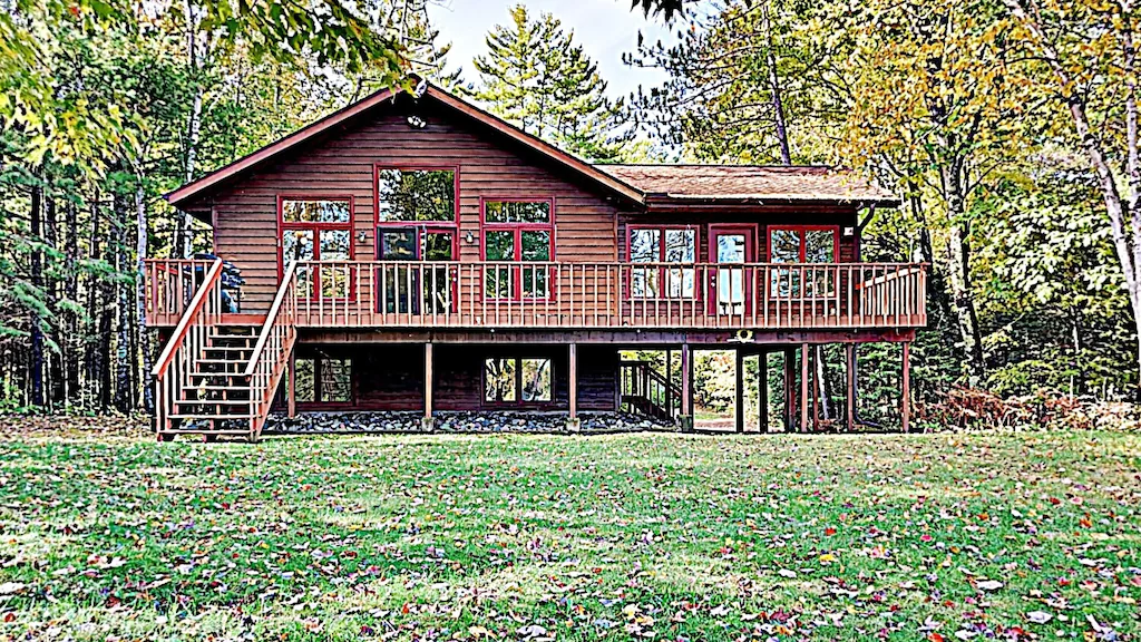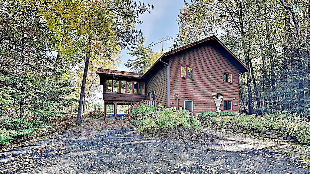 Beaver Bay Lodge is a secluded and private home located on a Beaver Bay on the southern shores of Nelson Lake. This cozy and clean cabin is a split level while featuring a large deck overlooking the lake as well as a nice 3 season porch with awesome views of Beaver Bay. The lot is wooded and feels very private. The yard gently slopes to the water so unlike a lot of homes in the area there is not a bunch of steps to get to the lake frontage.