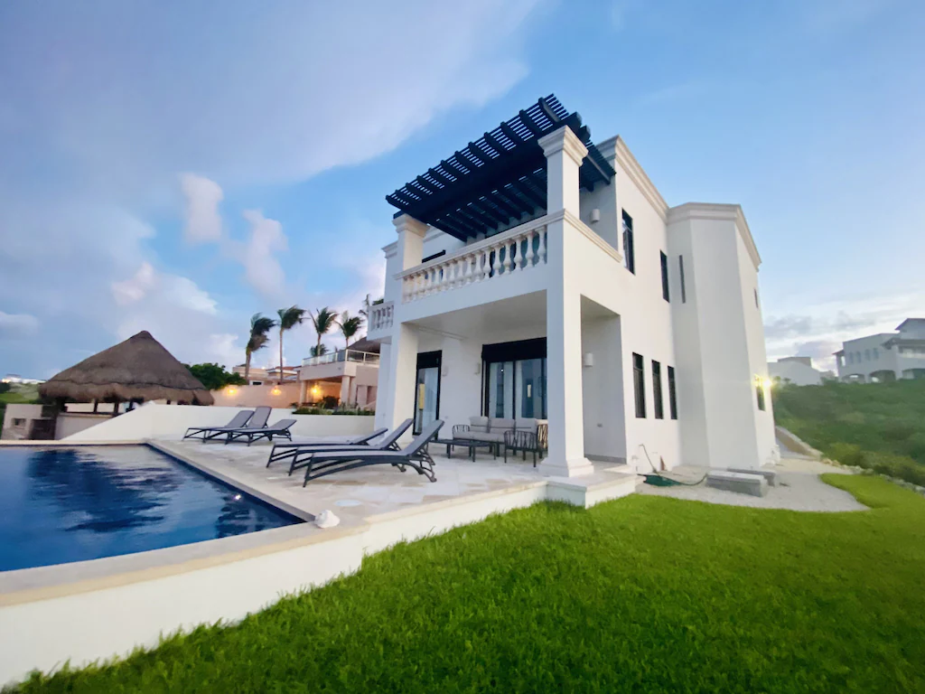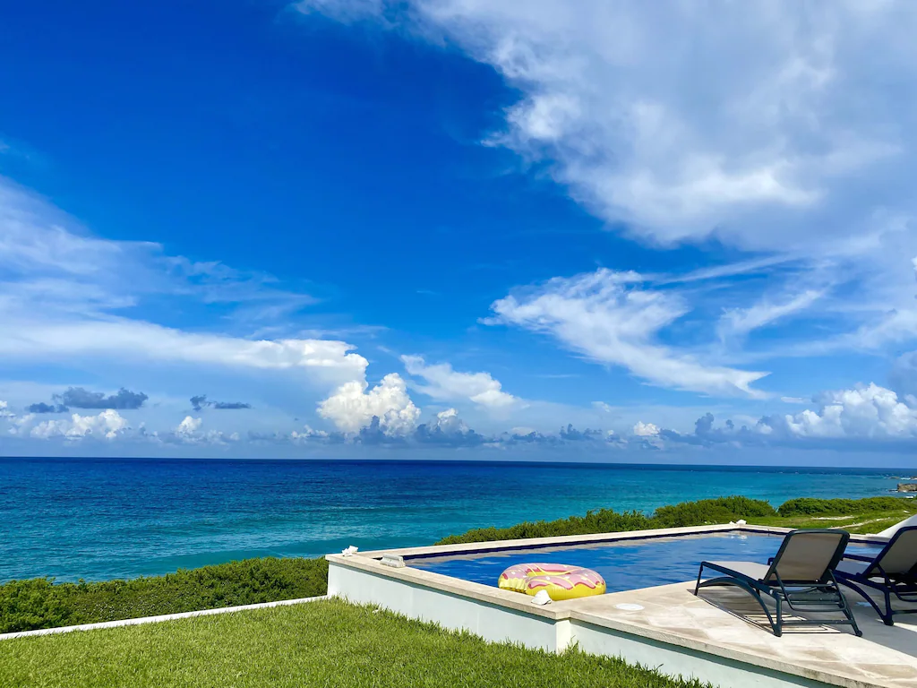 Enjoy spectacular unobstructed views of the Caribbean Sea, Punta Sur and the Temple of Ixchel (for which the island is named) from this spacious home, terrace, balconies and large salt water pool! Many island houses have roof top views, but few have true Caribbean ocean front! This house is designed and built by acclaimed architect Ariel Adame! The large open kitchen, living and dining space look onto the Caribbean ocean with large glass doors that easily open onto a covered and uncovered terrace adjacent to a large salt water pool and yard. An open, marble spiral staircase takes you to three master bedrooms. Each bedroom has luxurious linens, large wardrobes, large en-suite bathrooms (with custom organic, 100% handmade Yucatán toiletries) and balconies with breathtaking views. Casa Carey sleeps 6 adults comfortably, 8 total with children. This house includes strong wifi throughout, flat screen smart tv, and spacious chef inspired, fully equipped kitchen. Enjoy all that Isla Mujeres has to offer, including SCUBA diving, fishing, swimming with whale sharks, snorkeling on the underwater museum and the sea turtle conservation center, to name a few. Casa Carey is named after Tortuga Carey, the endangered hawksbill turtle, which breeds in the ocean in front of the cliffs of the house! Casa Carey provides onsite housekeeping, pool cleaning and gardening every other day (or your preferred schedule). House keeping can provide onsite laundry service if needed! We are happy to assist and arrange airport transfer, ferry, golf cart rental, private chef, excursions, groceries, yoga, massage, reservations, taxi, and much more!